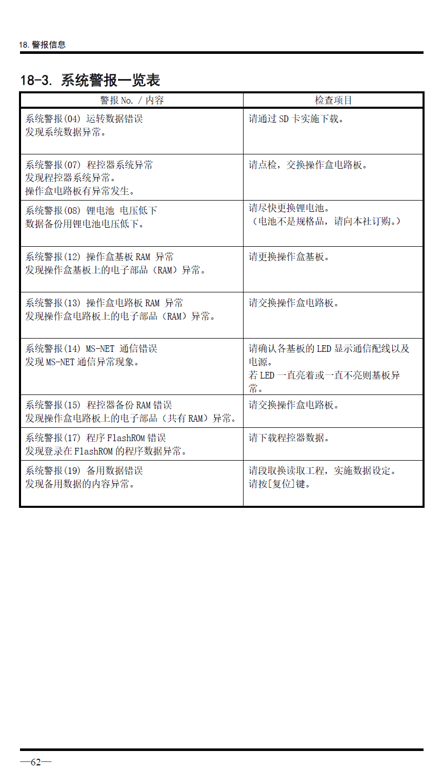ESW-III,EG系列警報(bào)解除一般說明